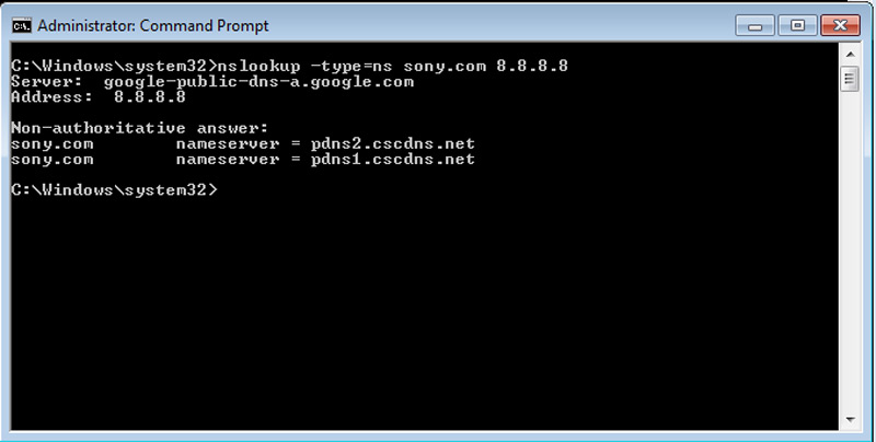 - Lorsque MS-DOS apparaît, nous devrons taper «nslookup google.com»