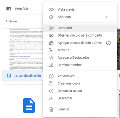 - Si vous souhaitez effectuer une action avec l’un de ces dossiers ou fichiers (supprimer, accéder, éditer, partager, télécharger, etc.), faites un clic droit dessus et choisissez l’option souhaitée.