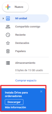 - Après ce qui précède, la version du navigateur de Google Drive s’ouvrira enfin. Lors d’un premier accès, la plateforme offre la possibilité de télécharger la version de bureau de Drive (c’est celle qui permet d’accéder aux fichiers qui y sont stockés lorsque vous n’avez pas de connexion internet). Cependant, cette étape est facultative, car il est possible de télécharger cette application à tout moment.