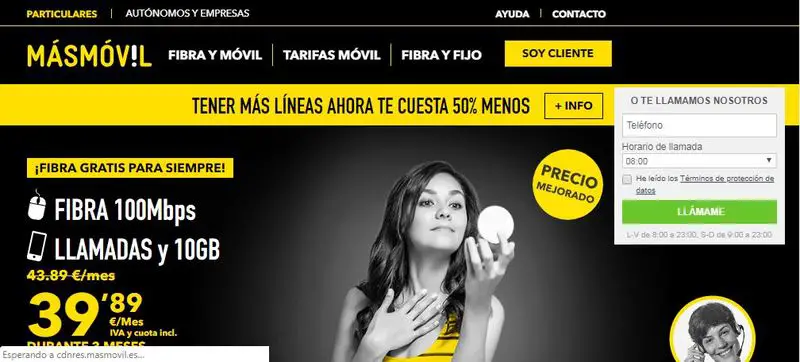 MásMóvil est une autre entreprise espagnole qui offre ce service à ses clients . En outre, il se distingue par l’offre de tarifs abordables pouvant être achetés par la plupart de ses clients , leur permettant ainsi de rester connectés à leur mobile tout en voyageant en dehors de l’Espagne vers différentes parties du monde . C’est pourquoi nous vous présentons ici les principaux tarifs de MásMóvil .