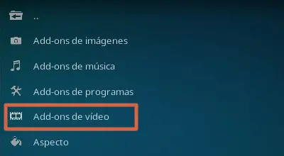 - Dans ce menu, vous verrez plusieurs options pour l’installation de modules complémentaires. Sélectionnez « Modules complémentaires vidéo » pour rechercher ce type de modules complémentaires .