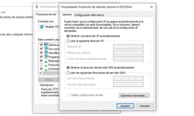 L’un de ces défauts est que certains DNS tiers peuvent bloquer l’accès aux réseaux Wi-Fi publics. Nous pouvons empêcher que cela se produise de manière très simple. Entrez simplement dans Configuration , Let’s Network and Internet , cliquez sur Centre Network and Sharing , nous donnons Wi-Fi et Propriétés . Une fois ici, nous recherchons Internet Protocol version 4 (TCP / IPv4), nous le sélectionnons et nous cliquons à nouveau sur Propriétés. Nous devons donner automatiquement l’adresse du serveur DNS.