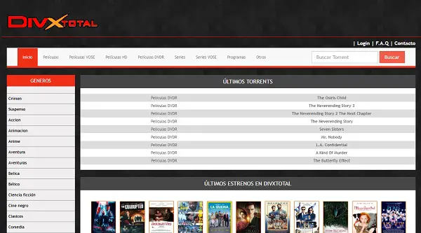 DivxTotal est l’une des pages préférées pour télécharger des films et des séries via un client uTorrent. L’un de ses avantages est qu’il est entièrement en espagnol et que la vitesse de téléchargement des fichiers est optimale par rapport à de nombreuses autres plateformes. Cependant, il faut mentionner qu’il est suspendu ou bloqué dans plusieurs pays .
