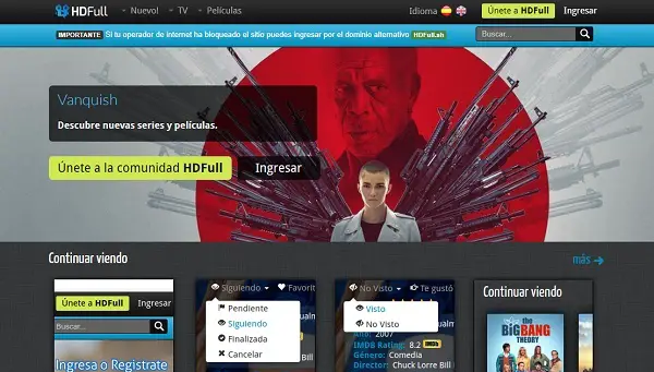 Bien que son interface ne soit pas si attrayante par rapport aux autres pages qui ont été mentionnées, Full HD a l’avantage d’avoir tout son design en espagnol . De la même manière, il offre la possibilité de rejoindre la communauté pour avoir plus d’avantages . Vous y trouverez des séries télévisées et des films de différents genres tels que le mystère, les enfants, la comédie, entre autres.