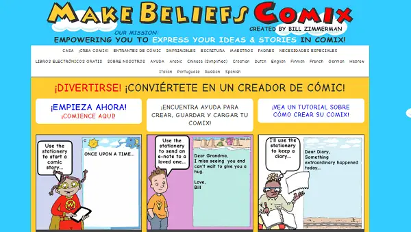 C’est une plate-forme pour créer des bandes dessinées de manière très amusante, elle est donc parfaite pour les enfants . La plate-forme est entièrement gratuite et dispose de trois toiles sur sa page d’accueil où vous pouvez commencer à créer. Ceci, en tenant compte du fait que le nombre maximum de vignettes est de 18 et que vous pouvez y ajouter différents éléments caractéristiques de la bande dessinée , tels que des objets, des textes, des arrière-plans et des personnages que vous pourrez ensuite télécharger au format PNG.