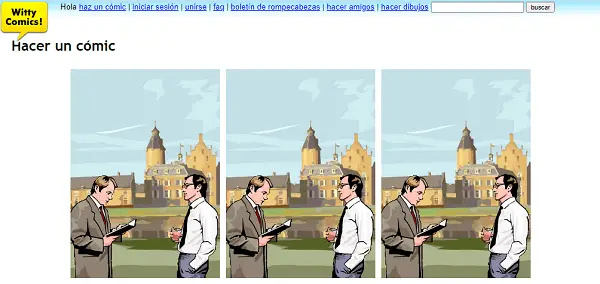 C’est l’une des pages qui facilite l’utilisation des bandes dessinées et qui se distingue par la présentation d’images réalistes classiques . Une fois que vous aurez accédé à Witty Comics, vous trouverez 3 vignettes dans lesquelles vous pourrez modifier différents types d’éléments pour créer votre propre BD. Ici, vous aurez des outils pour ajouter des arrière-plans de décors, des textes, des bulles de dialogue et un maximum de deux personnages .
