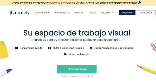 Il contient plus de 50 types de diagrammes et des modèles conçus par des professionnels pour une communication efficace tout au long d’une exposition. Vous pouvez utiliser Creately à partir de son portail Web ou de son logiciel téléchargeable pour ordinateurs. Pour y accéder, vous devrez vous inscrire avec un email . Si vous souhaitez utiliser cette plateforme, c’est le lien https://creately.com/es/home/ sur lequel vous devez appuyer.