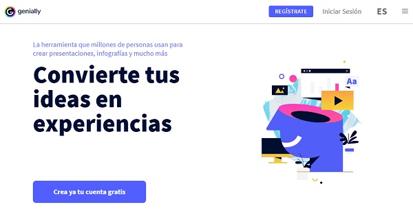 D’autre part, il a également la possibilité d’ incorporer des créations animées pour offrir une meilleure expérience visuelle. Comme d’autres plateformes, son inscription est gratuite et vous pouvez le faire via votre courrier électronique ou vos comptes de réseaux sociaux tels que Facebook et Google. Cliquez sur le lien suivant https://www.genial.ly/ pour accéder au portail web Genially.