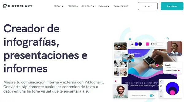 PiktoChart est une plateforme en ligne qui propose plus de 500 modèles personnalisables pour commencer à créer les infographies dont vous avez besoin. Il dispose d’une version gratuite assez complète , bien qu’il dispose également de sa version Premium avec des prix variant entre 14$ et 29$. Il convient de mentionner qu’il dispose d’un blog dans lequel vous aurez un tutoriel pour commencer à concevoir votre infographie . Si vous voulez l’observer, entrez par ce lien.
