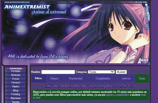 Animextremist propose non seulement une lecture directe des mangas, mais dispose également d’un large catalogue d’anime, de jeux vidéo , de romans, de fonds d’écran, entre autres. Son interface est simple et est en espagnol. Vous n’aurez pas besoin de vous inscrire pour accéder à son contenu et vous pourrez jouer aux animes en ligne.
