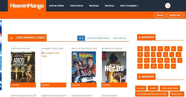 HeavenManga a classé les mangas (japonais et américains), manhwa (bande dessinée coréenne) et manhua (manga chinois). De cette façon, il offre une meilleure organisation et distribution pour trouver le contenu de votre préférence. Sa plate-forme est en espagnol et propose une grande variété de genres pour un meilleur emplacement.
