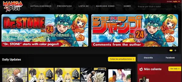 MangaPlus se distingue des autres plateformes Web car il dispose d’une application mobile pour les deuxAndroid comme pouriOS . De même, son interface est en anglais et en espagnol, donc son contenu sera également localisé dans ces deux langues. Il est important de mentionner que la grande majorité du contenu est en anglais, mais les mangas traduits en espagnol sont mis à jour chaque semaine .
