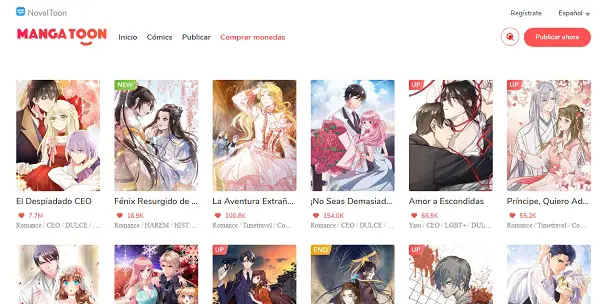 Les graphismes sont excellents et vous pouvez adapter la lecture du manga à la Tablette, au téléphone ou à la fenêtre du navigateur. Il a des mangas populaires bien qu’il ait une grande variété de bandes dessinées courtes avec différents genres qui vont de la romance à l’action. Entrez dans MangaToon via ce lien : https://mangatoon.mobi/es