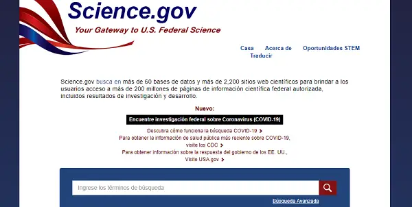 Science.gov est une page créée par le gouvernement des États-Unis afin de faciliter grandement le processus de recherche scientifique dans les universités. C’est un site avec des articles en espagnol et en anglais qui a le soutien d’organisations et d’agences américaines pour alimenter sa base de données.