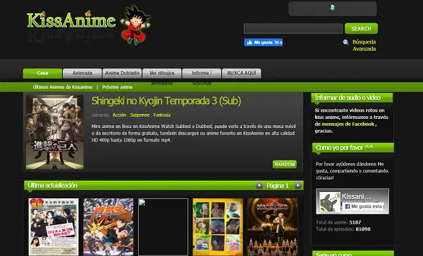 KissAnime es considerado una de las mejores páginas web para ver anime online gratis en inglés Internet, que destaca por una lista de animes organizados por los más nuevos en su página de inicio, por lo que tienes la opción de explorar esta lista hasta encontrar la serie que veux-tu. Étant un site gratuit, il ne nécessite pas d’inscription préalable , bien qu’il comporte généralement de petites publicités lors de la lecture du contenu.