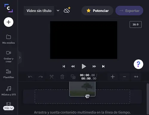 L’outil suivant est l’un des plus complets pour faire des modifications et même pour apprendre à éditer . Pour commencer, vous devez importer un fichier vidéo que vous avez dans votre galerie PC ou à partir de Google Drive. Cependant, vous pouvez également ajouter ce type de multimédia à partir de la webcam , même pour l’ajouter plus tard.