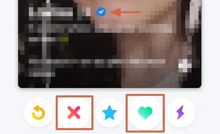 Remarque : Si vous aimez une fille et que vous appuyez tous les deux sur « J’aime » (le cœur vert), une salle de discussion s’ouvrira pour démarrer la conversation. Pour plus de sécurité, acceptez les profils qui ont une «coche» bleue à côté de leur nom . Il s’agit d’une mesure de sécurité pour garantir que vous parlerez réellement à la personne que vous avez vue sur les photos, car cela a été vérifié avec une technologie intelligente.