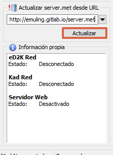 - Une autre option est d’aller dans » Serveurs » et dans » Mettre à jour Server.met à partir de l’URL » insérer l’adresse suivante : http://sites.google.com/site/ircemulespanish/descargas-2/server.methttp://emuling. gitlab .io / server.met