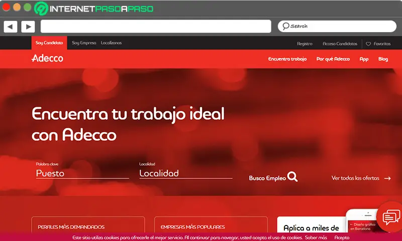 Pour sa part, l’un de ses plus grands avantages est qu’un grand nombre d’entreprises sont restées sur ce site pour mettre à disposition leurs bacchants et localiser des travailleurs aux profils professionnels différents . En dehors de cela, pour démarrer votre recherche, il vous permet d’ inclure certains filtres pour localiser des résultats plus précis, ces filtres sont: la position souhaitée (par mot-clé) et la localisation préférée.