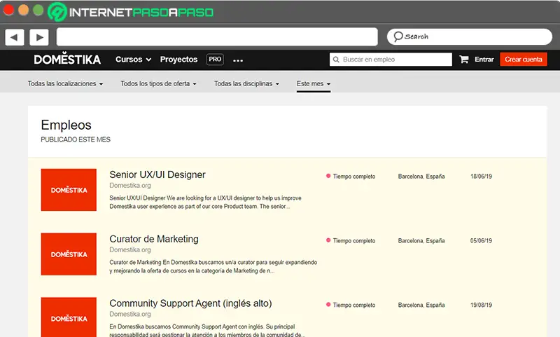 En ce sens, pour pouvoir utiliser le site, il vous faudra vous y inscrire et une fois cela fait, vous pourrez voir toutes les offres d’emploi qu’il contient. Il convient de noter que si vous ne souhaitez pas vous «connecter» avec votre adresse e-mail, vous pouvez le faire automatiquement depuis votre profil Facebook . L’une de ses fonctionnalités les plus importantes est qu’il fournit un compte PRO pour les créations.