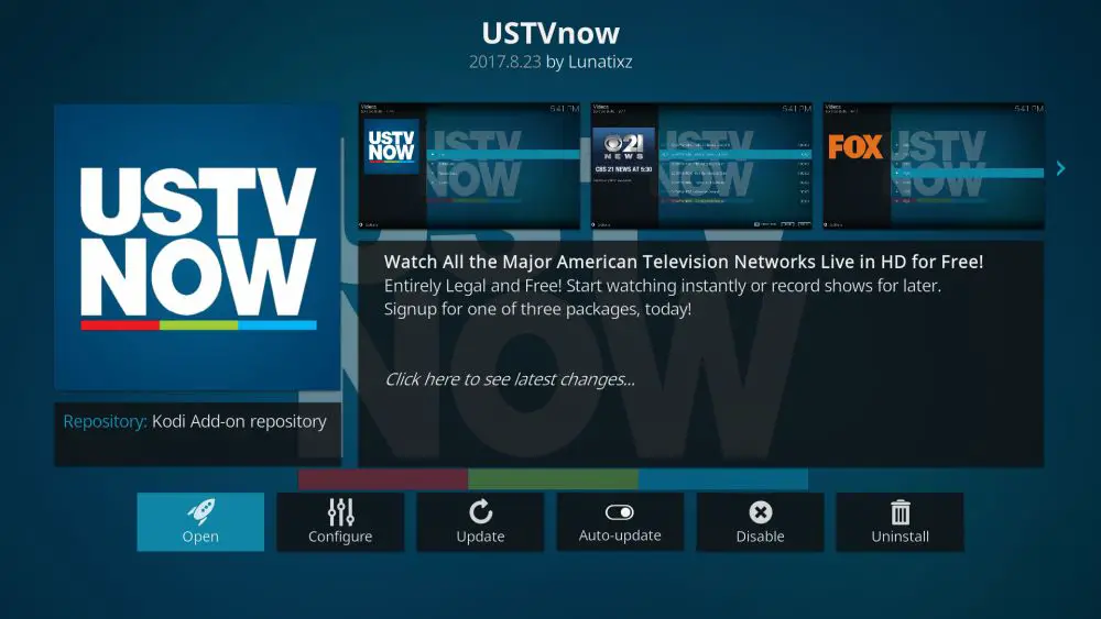 USTVnow est l’un des modules complémentaires tiers les plus légitimes pour Kodi. Il interagit directement avec le site Web USTVnow, un service conçu pour aider les militaires et les autres Américains à l’étranger qui souhaitent regarder des émissions de chez eux. USTVnow propose une bonne sélection de chaînes de diffusion en direct, de ABC à CBS, Fox, NBC, PBS et des chaînes câblées comme Comedy Central, Syfy et Spike, ou même le football universitaire . Vous aurez besoin d’un compte pour accéder aux émissions, mais ne vous inquiétez pas, il existe un plan de chaîne gratuit qui vous permet de regarder gratuitement le contenu le plus basique.