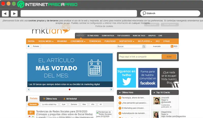 Il s’agit d’un agrégateur de nouvelles axé sur le marketing en ligne et, pour cette raison, son objectif principal est de pouvoir le diffuser auprès des écrivains et des blogs liés au référencement, aux réseaux sociaux, à la conception de sites Web et à tous ces sujets. L’une de ses particularités de plus grand intérêt est que, comme Mktfan, il garantit de bons résultats lors du partage du contenu téléchargé sur la plateforme sur les sites sociaux .