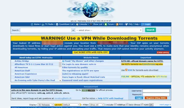EZTV comme alternative à MejorEnVO, cliquez sur ce lien ( https://eztv.re )
