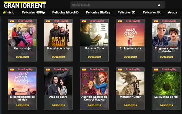 GranTorrent se positionne comme l’un des favoris pour son interface moderne et la qualité de ses films et séries . Vous pouvez obtenir une grande variété de qualités dans des films tels que HD, 3D et 4K . En ce qui concerne les autres plates-formes mentionnées, la publicité gérée par GranTorrent n’est pas si invasive.