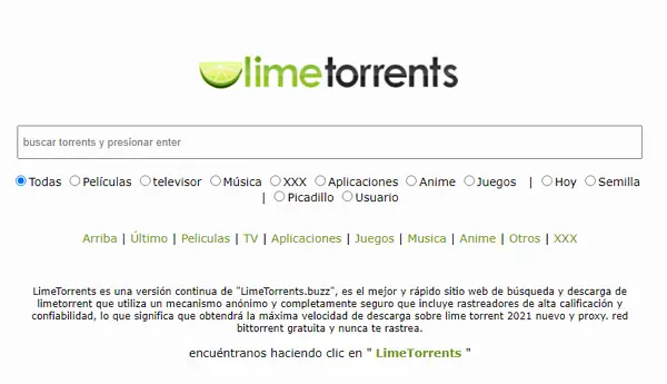 LimeTorrents est un portail avec beaucoup d’expérience sur Internet , qui n’a présenté aucun rapport ou échec par les utilisateurs qui utilisent cette plate-forme. Son interface est assez simple à utiliser et les résultats de la recherche apparaissent sous forme de liste d’accès permettant de télécharger le fichier Torrent.