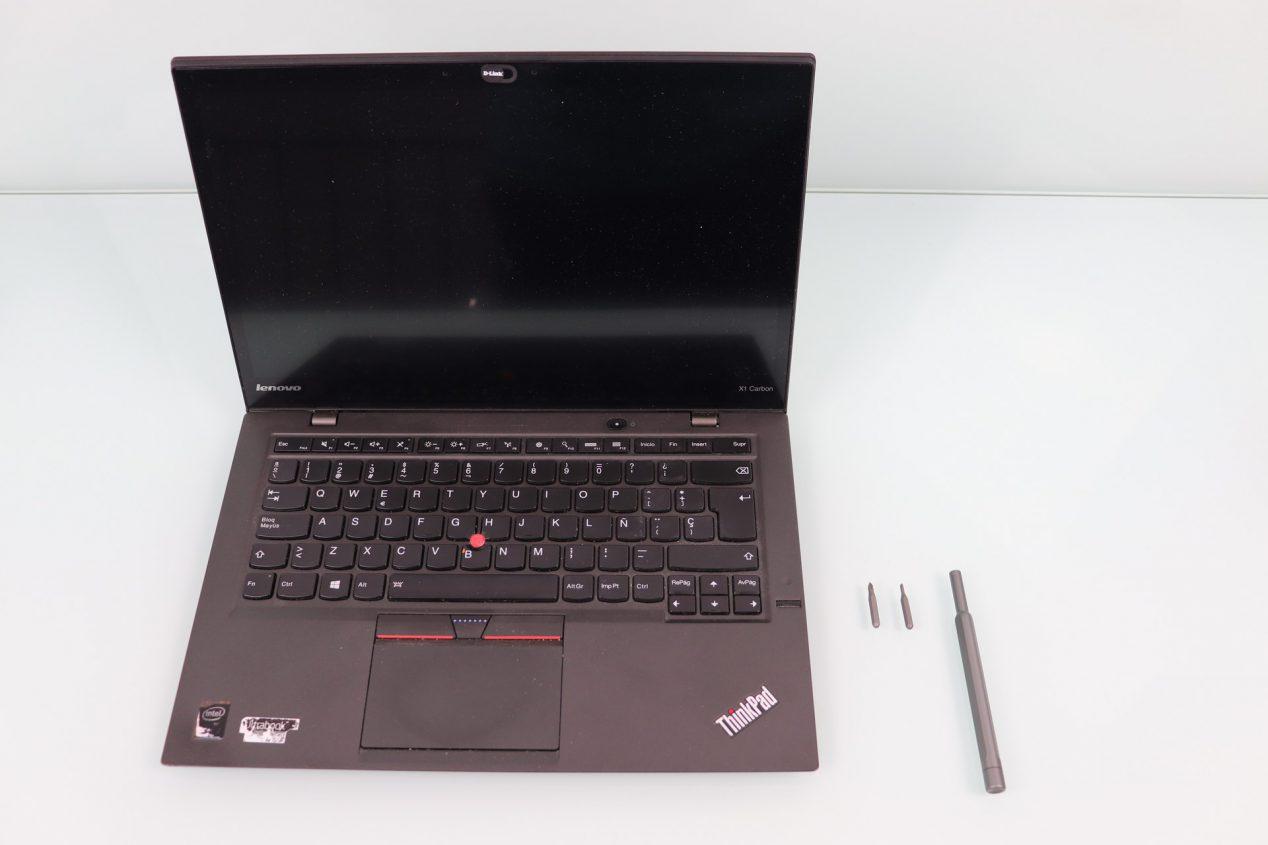 Le Lenovo X1 Carbon est un ultrabook vraiment facile à démonter, nous aurons simplement besoin d’un petit tournevis cruciforme, et aussi d’un tournevis plat pour nous aider à retirer les connecteurs UFL de la carte Wi-Fi.