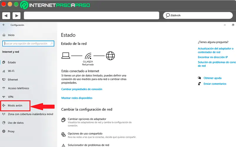 Le processus pour activer le mode avion dans Win 10 est très simple, pour cela, il vous suffit de suivre chacune des étapes suivantes: