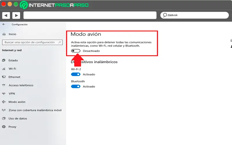 Si, pour une raison quelconque, vous avez activé cette fonction sur votre PC et que vous souhaitez la désactiver à nouveau afin de pouvoir à nouveau communiquer avec vos réseaux sans fil, il est important que vous suiviez chacune des étapes mentionnées dans la méthode ci-dessus. Une fois que vous êtes dans la section Mode avion de Windows , tout ce que vous avez à faire pour remettre votre ordinateur dans des conditions normales est de désactiver le commutateur qui a été activé dans la méthode précédente.