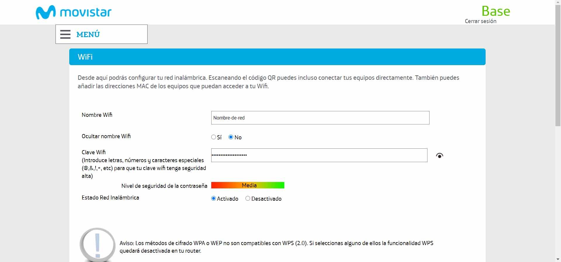 Si vous avez le routeur Movistar, vous devez entrer dans la section «WiFi Plus» qui fait référence à la bande 5G, tandis que «WiFi» fait référence à la bande 2.4G. Dans ce menu de configuration, vous verrez une option appelée «État du réseau sans fil» et elle devrait être marquée «Activé».