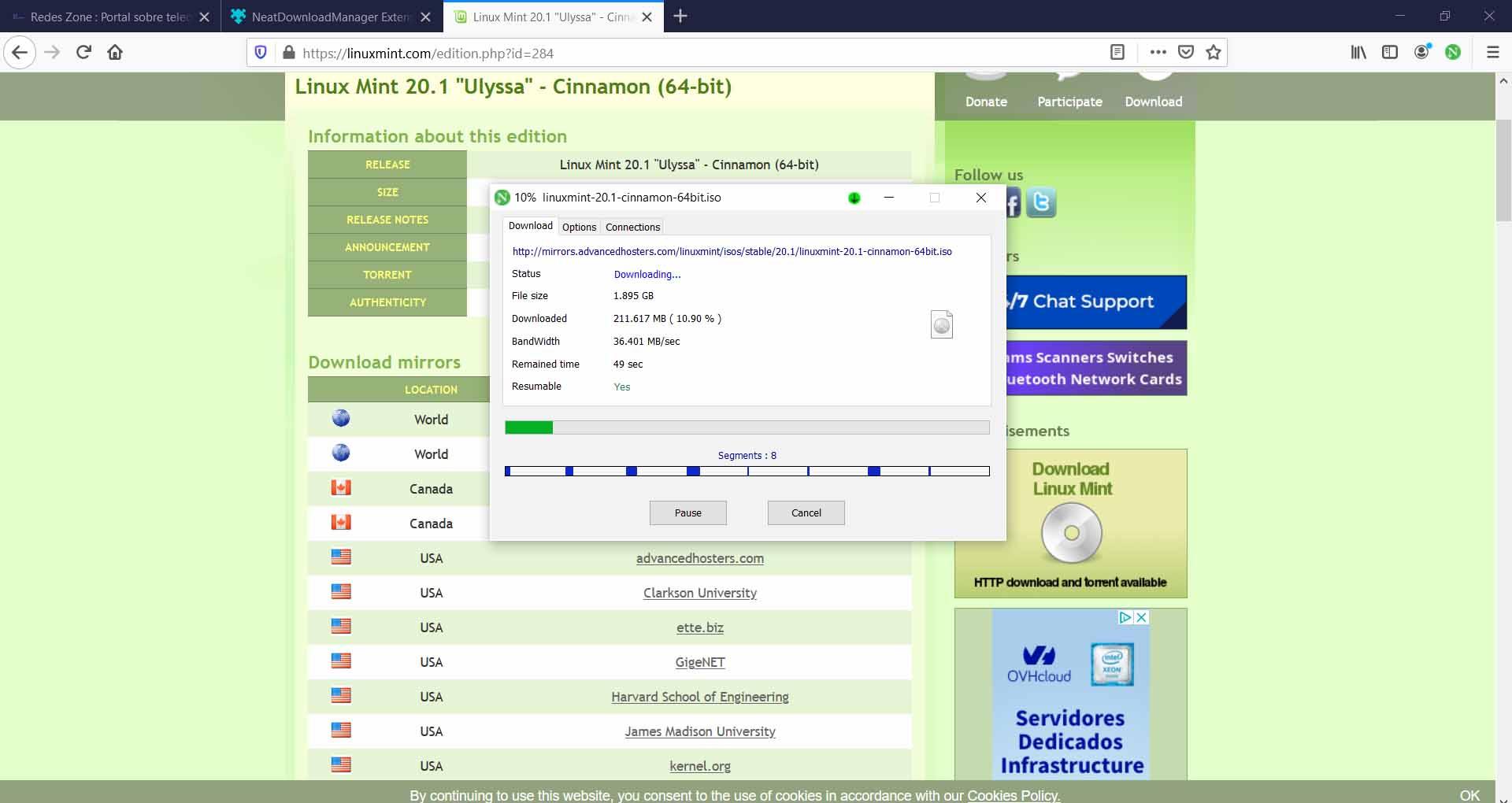 Dans notre exemple, nous avons essayé de télécharger l’ISO de Linux Mint, l’une des distributions Linux les plus populaires. Un simple clic sur le bouton de téléchargement vous ajoute automatiquement à Net Download Manager et démarre le téléchargement via le programme.