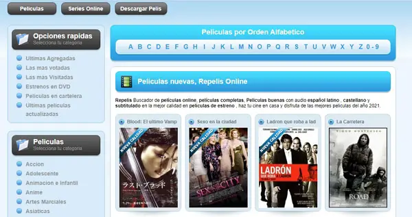 Ce site dispose d’ un catalogue varié, qui sont des films (y compris la production latine), des séries, des dessins animés, etc . Cependant, étant une page non officielle, vous devrez faire face à la présence de publicités ennuyeuses. Cependant, si vous utilisez un AdBlock, c’est un détail qui restera dans le passé. Il est à noter que la reproduction en ligne du contenu de Repelis se fait via Streaming.