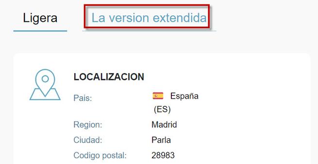 De là, nous pouvons extraire un emplacement plus précis. En plus du pays, il nous offre une région (Communauté Autonome) qui est dans ce cas Madrid et une ville (municipalité) qui est Parla. Quant à la ville, elle n’est pas toujours correcte et vous place dans une commune voisine. Enfin, nous avons les sections plugins et navigateur.