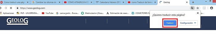 • Plus tard, vous chercherez une page officielle dans une autre langue, lorsque vous l’ouvrirez, vous serez situé dans la marge supérieure droite, une petite fenêtre apparaîtra avec une question Voulez-vous traduire cette page? Cliquez sur «Traduire».