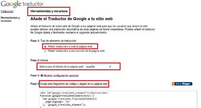 • Cliquez sur l’option «Outils et ressources» et choisissez à l’étape 1 «Ajouter la traduction à l’ensemble de la page Web».