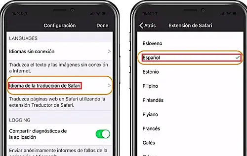 • De cette façon, vous terminez la configuration de votre traducteur depuis votre mobile. Pour toujours traduire les pages écrites dans cette langue, appuyez sur «Plus» puis sur «Toujours traduire».