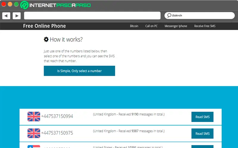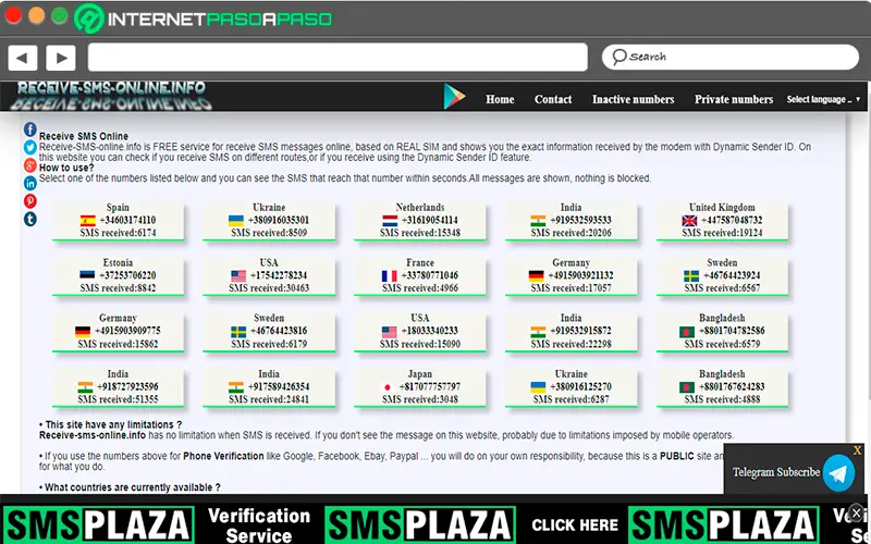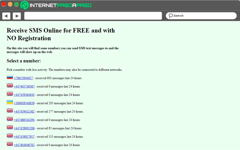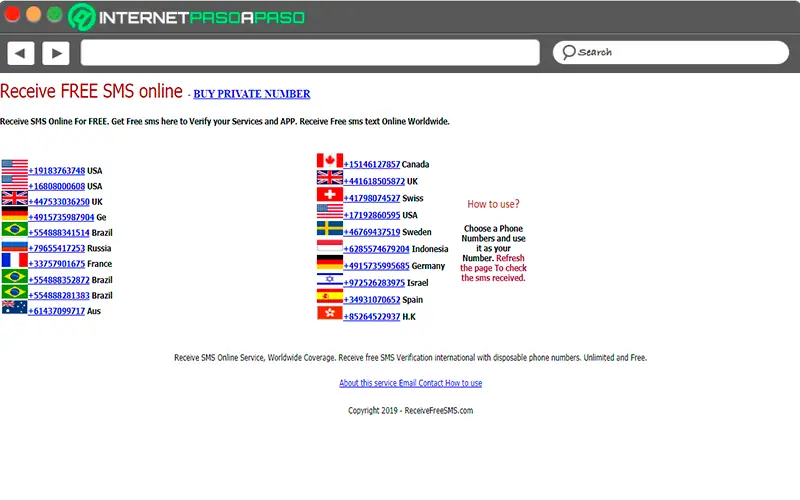 Ici, l’utilisateur doit simplement saisir Recevoir des SMS et prendre l’un des numéros publiés à ce moment pour son pays , gardez à l’esprit qu’ils sont fréquemment modifiés, il est donc préférable de mettre à jour le site à chaque fois. va utiliser .