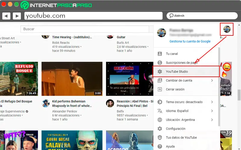 - Une fois que vous êtes entré sur le site, faites un clic gauche sur votre image de profil et choisissez «YouTube Studio».