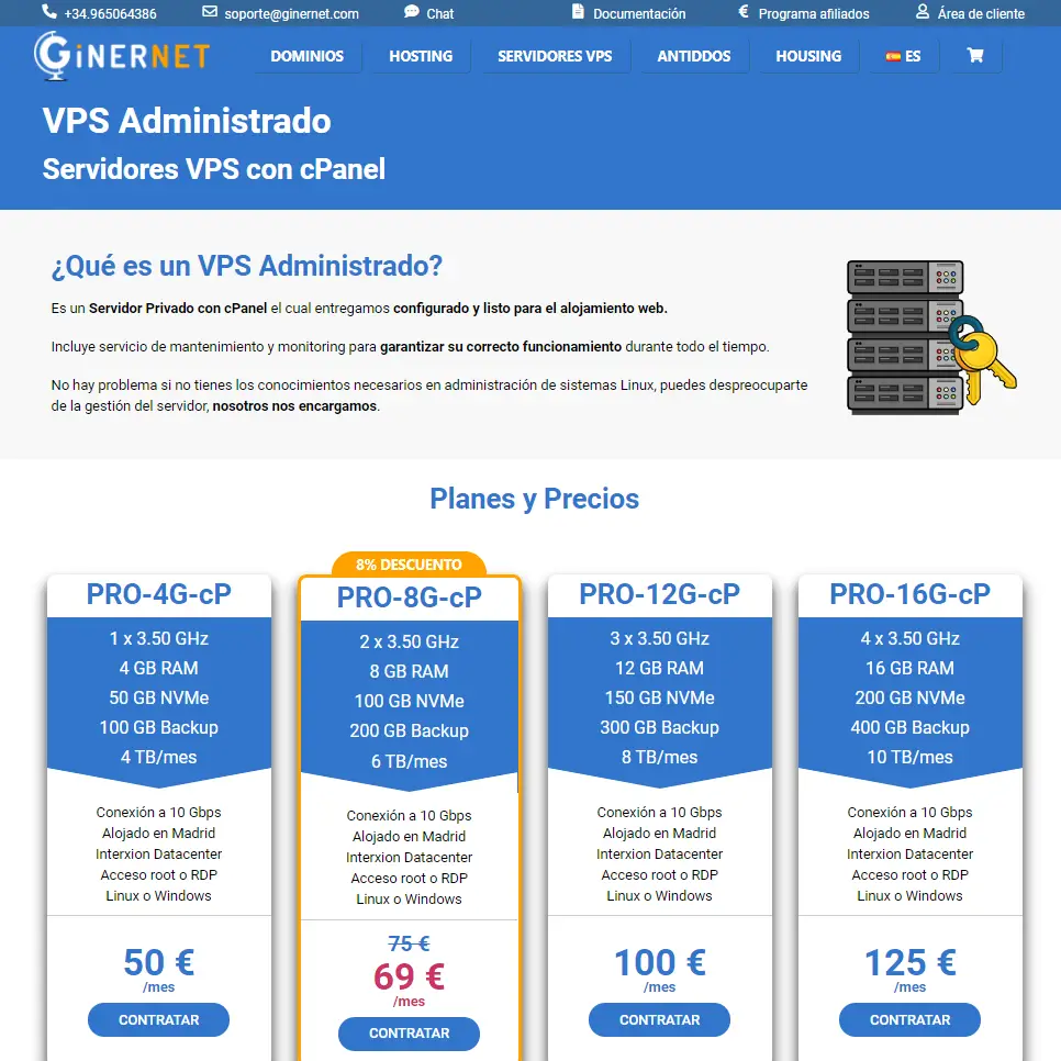 Dans le cas où vous n’avez pas les connaissances nécessaires, vous pouvez également opter pour un VPS managé . Ce type de VPS intègre une licence cPanel Admin pour gérer facilement et rapidement le VPS, en plus, vous pouvez créer jusqu’à 5 comptes cPanel facilement et rapidement. Les autres fonctionnalités de ce cPanel sont qu’il inclut la licence JetBackup pour effectuer des copies de sauvegarde quotidiennes, hebdomadaires ou mensuelles de chaque compte cPanel.