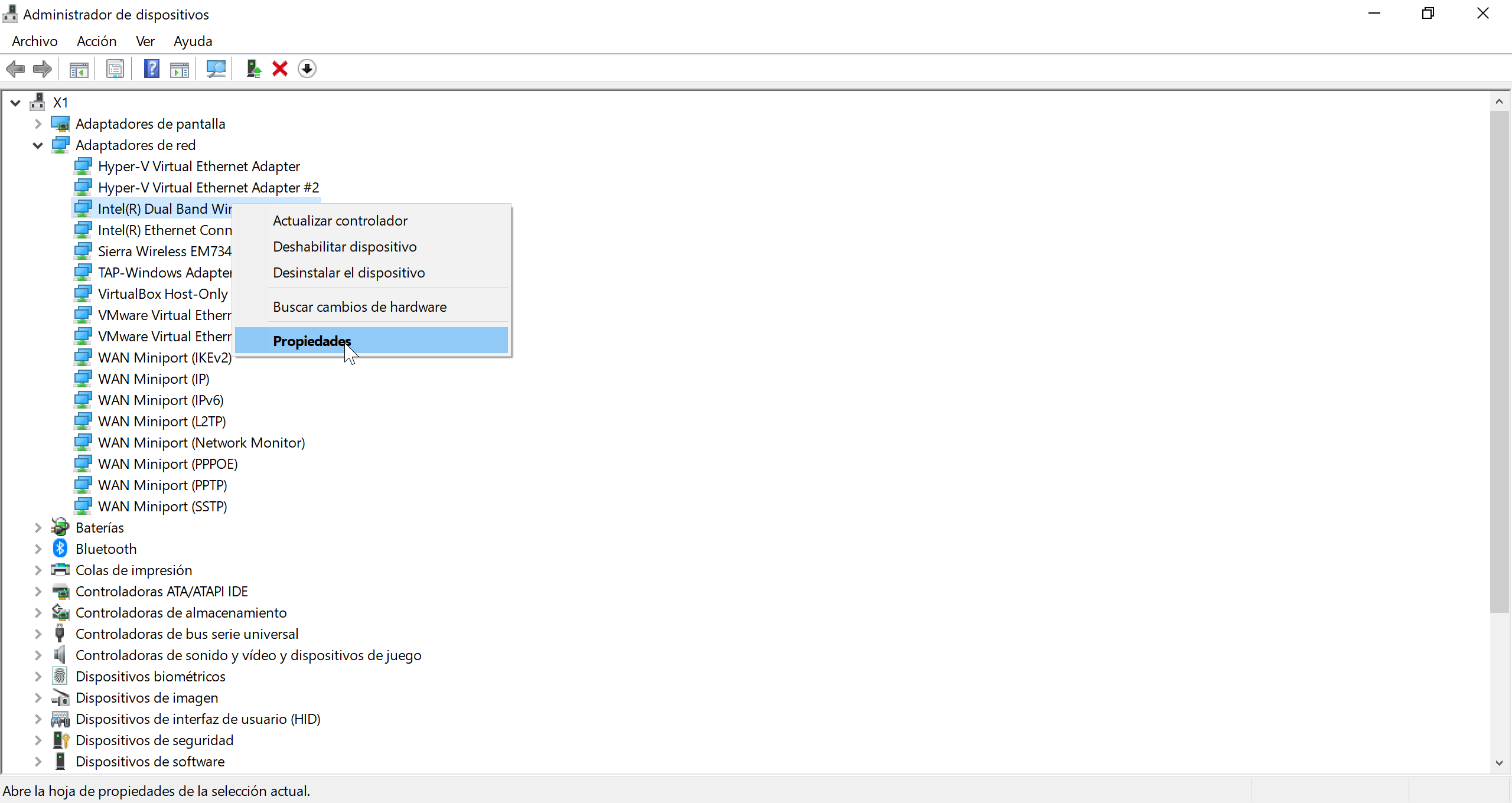 Lorsque nous aurons déployé tous les « adaptateurs réseau », nous pourrons voir en détail toutes les cartes réseau physiques et virtuelles que nous avons dans notre système d’exploitation. Nous sélectionnons la carte Wi-Fi que nous avons.