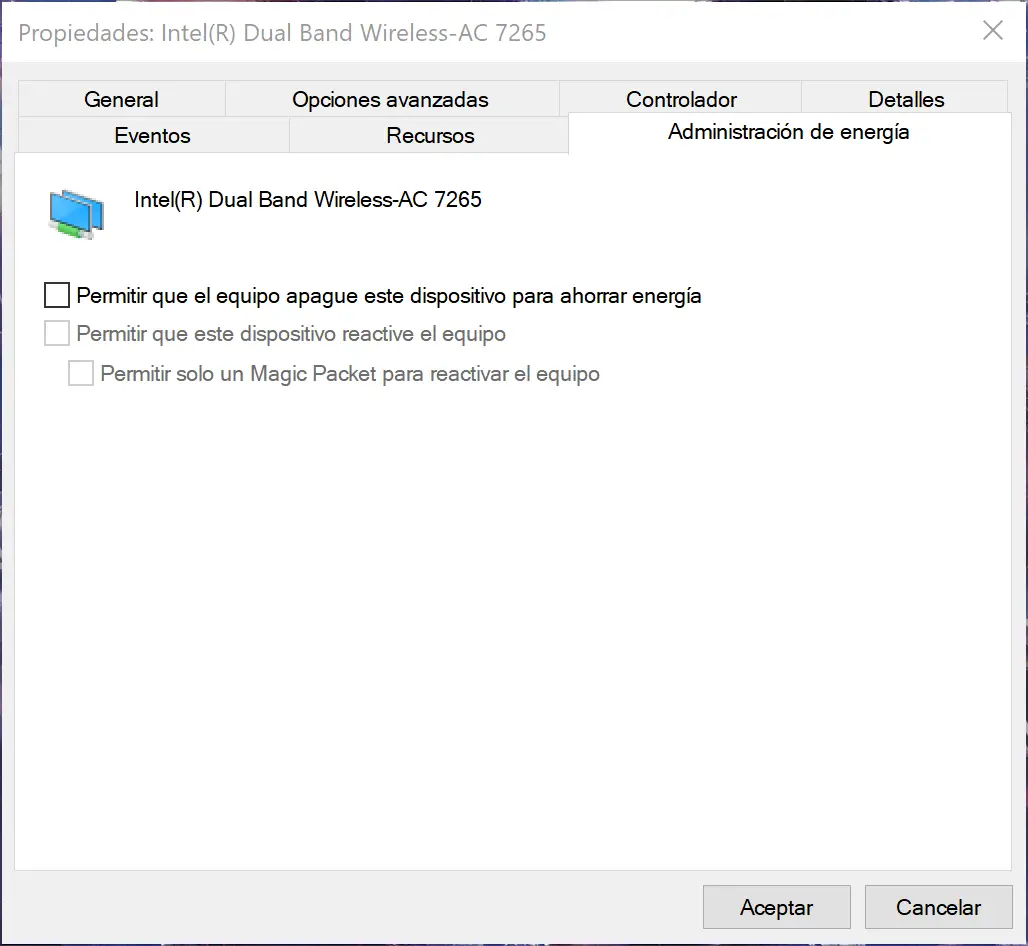 Vérifiez que nous n’avons pas activé l’économie d’énergie sur la carte Wi-Fi