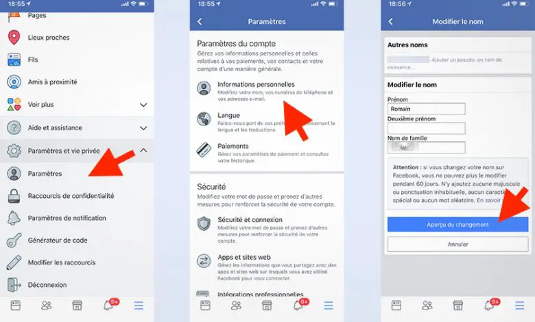 Comment puis-je changer mon nom sur Facebook