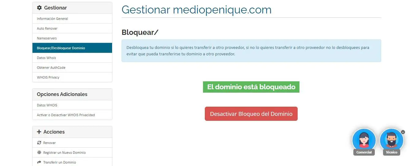 Par conséquent, tant que nous gardons le domaine bloqué, ce transfert ne pourra pas être effectué. Au cas où à l’avenir nous voudrions le transférer, nous aurions simplement à le déverrouiller. C’est une astuce intéressante pour éviter le piratage de domaine.