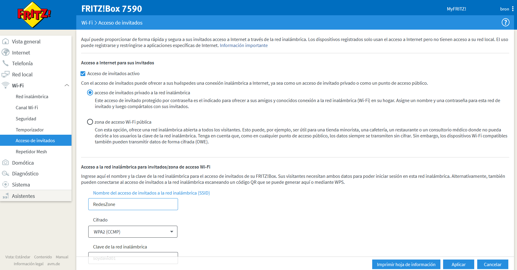 Dans le cas des routeurs AVM FRITZ!Box, la configuration du réseau invité WiFi et filaire est beaucoup plus élégante et nous offre plus de possibilités. Par exemple, nous pouvons configurer un réseau WiFi invité privé, ou créer un réseau WiFi public (ouvert) avec authentification dans un portail captif.