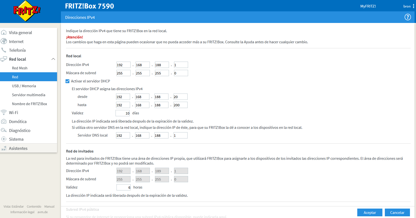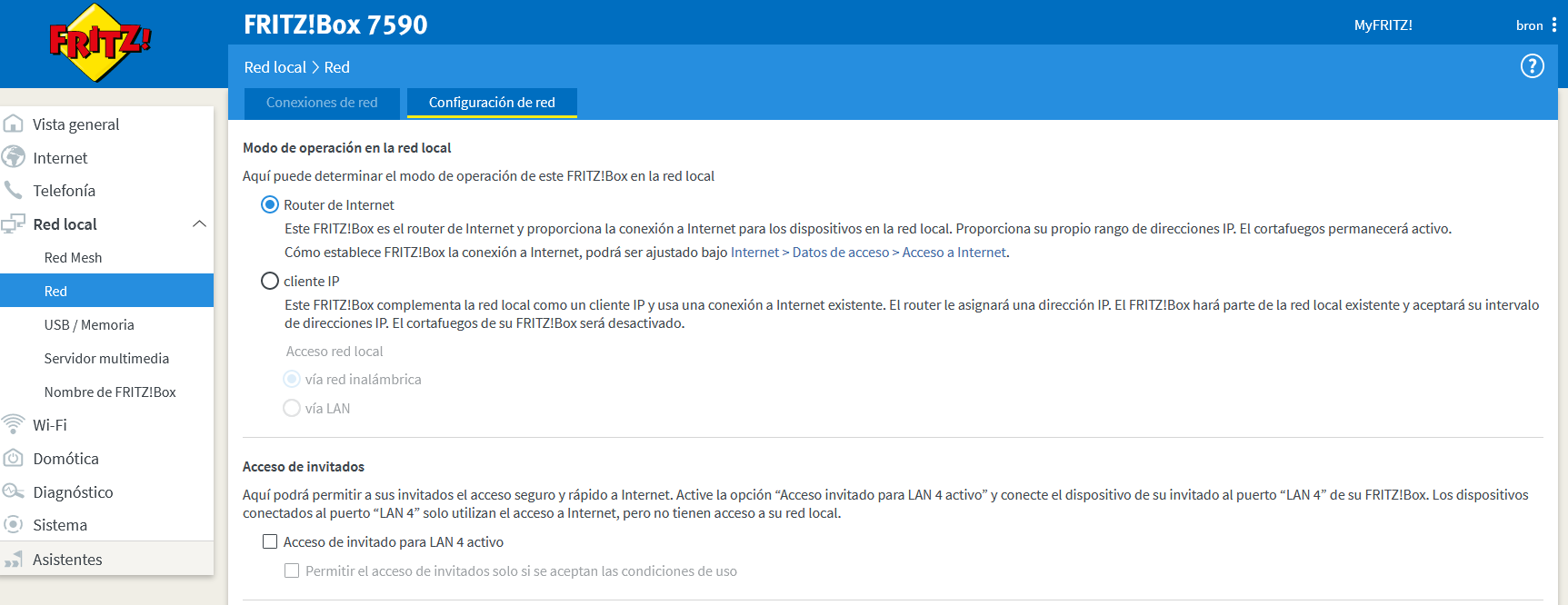 Cette AVM FRITZ ! Il nous permet également de configurer le port LAN4 pour le réseau invité, il aura accès à Internet mais pas au réseau local principal. C’est idéal pour connecter un ou plusieurs ordinateurs (à l’aide d’un commutateur) au réseau invité et être complètement séparé du réseau principal. Dans la section «Réseau local / Réseau / Configuration réseau» vous pouvez voir cette configuration très intéressante.