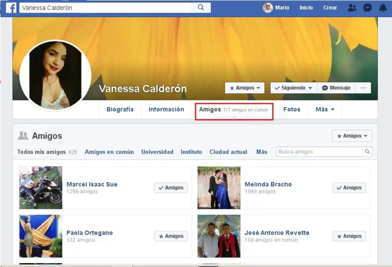 Pour ce faire, il vous suffit de saisir le profil de votre contact et de cliquer là où il est dit «Amis». Cela vous enverra à la liste de toutes les personnes qu’il a ajoutées. Encore une fois, vous devez chercher parmi eux tous avec l’espoir que parmi eux se trouve celui que vous recherchez.