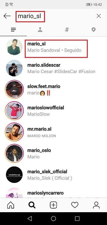 Depuis le mobile, vous devez entrer dans la section «Explorer»; touchez «Recherche»; écrivez le nom d’utilisateur correspondant au profil que vous recherchez; et sélectionnez le seul profil qui apparaîtra correspondant à cette recherche. Si vous ne trouvez aucun résultat, c’est parce que vous avez mal orthographié le nom ou simplement parce que cette personne vous a bloqué . Alors rectifiez les informations ou essayez de faire la requête à partir d’un autre profil.